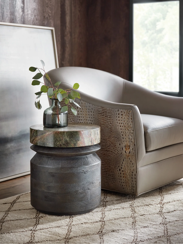 Crafted with a durable mango wood base and a forest green marble top, the Valor accent table is a stylish and functional addition to any space.