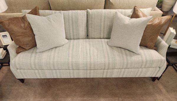 A new frame from Wesley Hall, the elegant Holloway has subtle sloping arms and sides. Standard with a bench seat and two back cushions, this silhouette is available as a chair and has a coordinating ottoman.